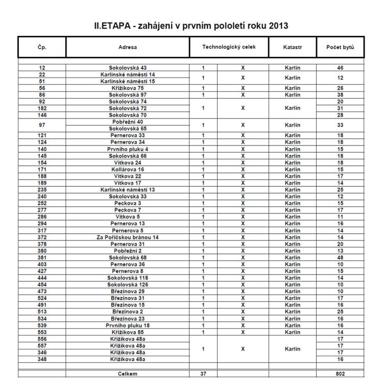 I. etapa je zahájena v druhém pololetí roku 2012. Na seznam bytových domů zahrnutých do I. etapu se můžete podívat v galerii níže.